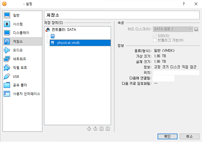 이후 설치된 가상 PC의 설정으로 가서 저장소를 선택 후 해당 파일을 선택하면 됩니다