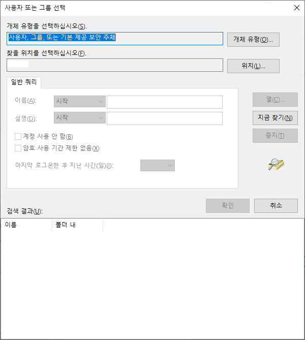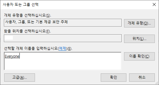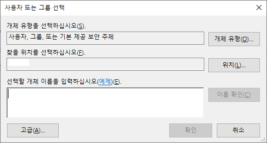 6. 이후 사용자 또는 그룹 선택 화면에서 다시 확인을 누릅니다