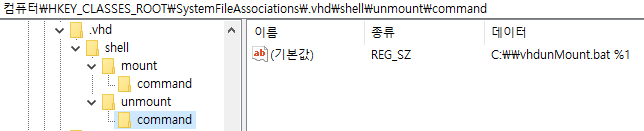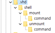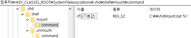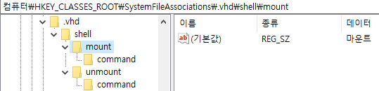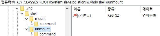 필자의 경우 vhd 파일을 마운트와 언마운트를 자동화하기 위해 메뉴를 추가했습니다