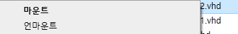이후 vhd 파일을 우클릭하면 해당 메뉴가 생성되는 것을 확인하실 수 있습니다