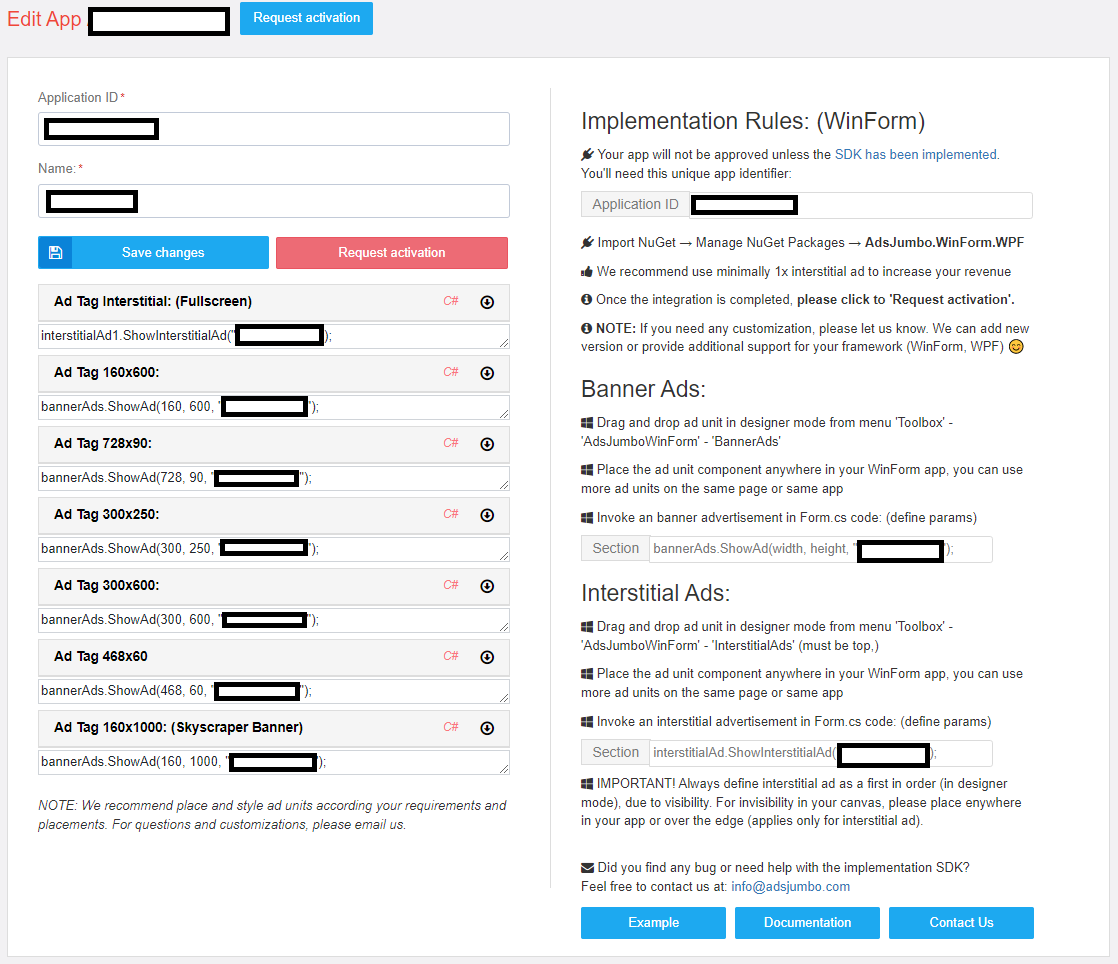 Ads Jumbo 측에서 검토 후 해당 App를 활성화해준다