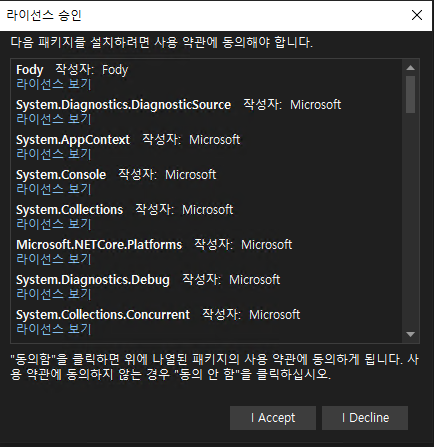 위 캡처처럼 Costura.Fody 와 Fody 가 설치된다