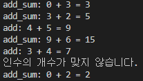 클래스를 사용하다 보면 인자 값 개수에 따라서 다르게 동작하여야 하는 경우가 발생할 수 있습니다 이럴 경우 __call__ 함수를 이용해서 사용하면 됩니다 class calc(): g = 0 def __init__(self) -> None: pass def __call__(self, *args: int, **kwds: int) -> None: if len(args) == 1: pre = self.g self.g += args[0] return print("add_sum: {} + {} = {}".format(pre, args[0], pre + args[0])) elif len(args) == 2: self.g = args[0] + args[1] return print("add: {} + {} = {}"...