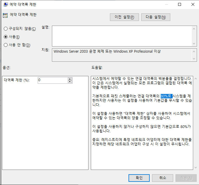 [Windows] 윈도우 인터넷 속도 제한 해제