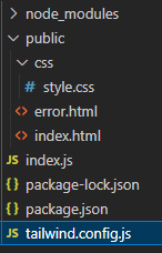[Tailwind] 설치 및 초기 설정 Tailwind 공홈의 주소는 아래를 참조하세요 https://tailwindcss.com/ Tailwind CSS - Rapidly build modern websites without ever leaving your HTML. Documentation for the Tailwind CSS framework. tailwindcss.com 초기 설치와 세팅 부분에서 헷갈리는 부분이 존재하여 참고를 위해 글을 작성해 봅니다 파일 구조는 [파일] index.js [폴더] public [폴더] css [파일] style.css [파일] index.html [파일] error.html 상위 폴더 index.js 파일의 경우 이전 작성한 포스팅을 참고하면 됩니다 https://devsalix.tistory.com.. Web/Tailwind(CSS) 2022.12.13