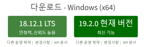 [Node.js] 설치 https://nodejs.org/ko/ Node.js Node.js® is a JavaScript runtime built on Chrome's V8 JavaScript engine. nodejs.org Node.js는 Chrome V8 JavaScript 엔진으로 개발된 JavaSciprt 런타임으로 공식 홈페이지에 가면 현재 최신 버전의 설치 파일을 다운로드 후 설치가 가능합니다 LTS의 경우 안정성과 신뢰도가 높으니 가능하면 LTS 버전을 설치하는 것을 추천드립니다 설치 방법은 그냥 Next를 연달아 누르면 설치가 가능하며 설치 완료 후 PC를 재부팅 후 사용하시면 됩니다 이후 Command창에서 "node -v" 명령어로 node.js의 버전을 확인 가능하고 "npm -v" 명령어로 npm의 버.. Web/Node.js 2022.12.09