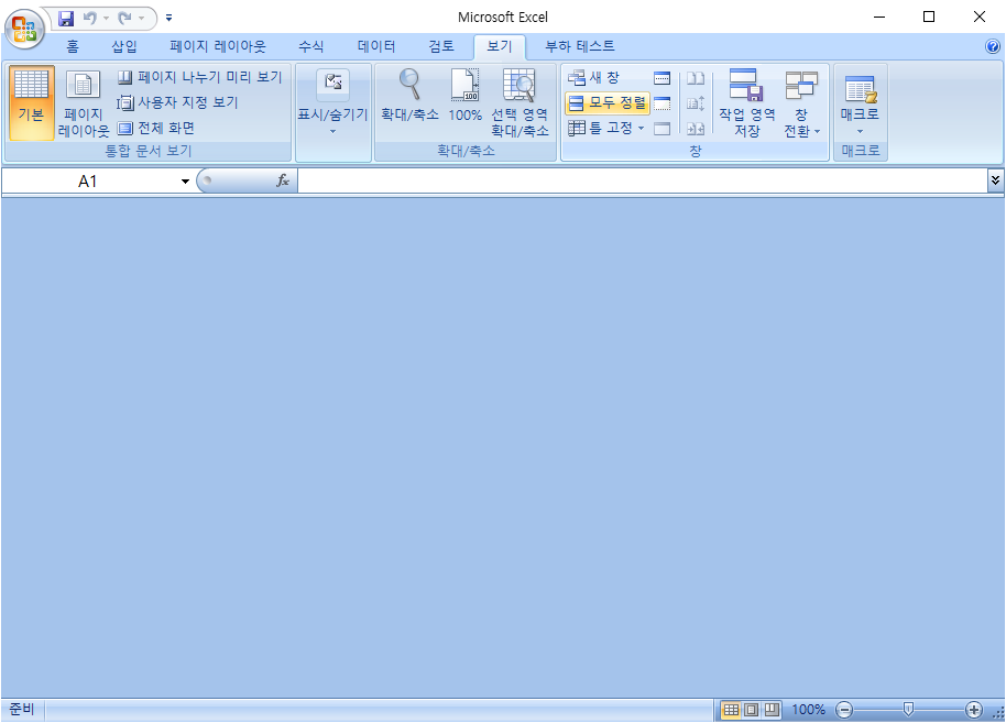 상단 보기 메뉴에서 모두 정렬 을 선택