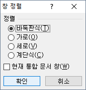 이후 나타난 메뉴에서 바둑판식 선택 후 확인