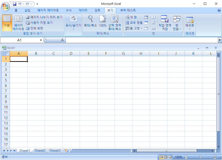 엑셀 작업 중 아래의 버튼(창복원)을 잘못 눌렀을 때 창이 사라지는 현상이 발생